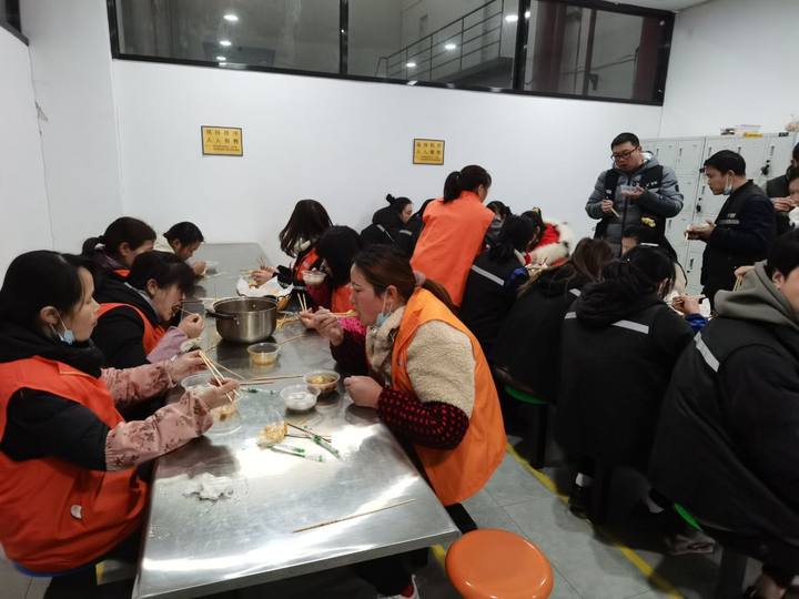 活動當天,人事部小姐姐早早便忙碌起來了,布置桌子,擺好電飯鍋,加好水,煮起了湯圓,一鍋鍋圓圓的湯圓在鍋里沸騰。