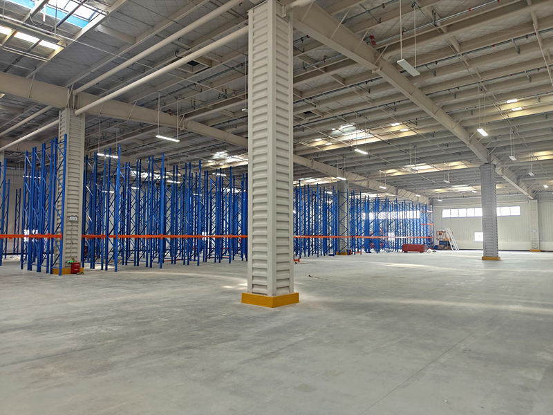 建筑性質(zhì):倉庫外墻采用1.2米高的磚墻,1.2米以上部分采用雙面彩鋼板搭配75mm厚的保溫玻璃棉,確保商品得到良好的保護。