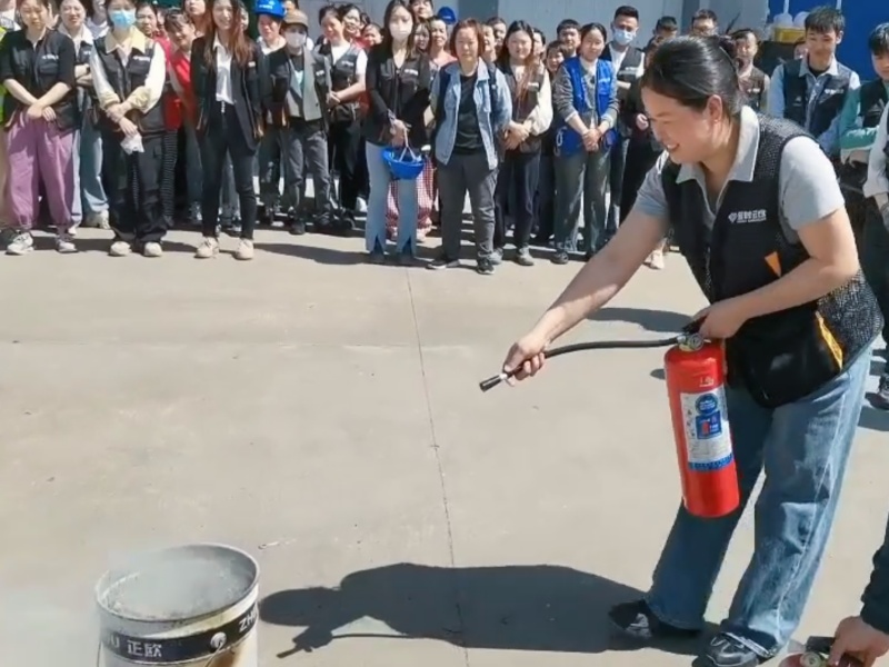 演練的重頭戲,是一場“零距離”的滅火器實操培訓。倉經理帶領團隊在空地上架設火盆,模擬小型火源,并詳細講解滅火器的“提、拔、握、壓”四步操作法:“握住噴嘴根部,對準火焰根部,壓下手柄噴射,一定要站在上風口!”
