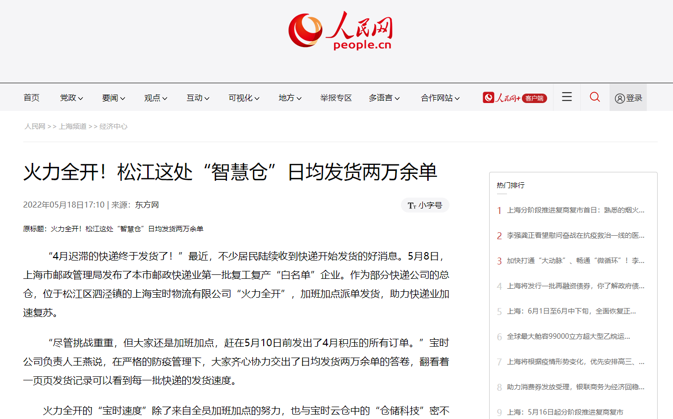 上海這家智慧云倉助力快遞加速復工,被多家主流媒體爭相報道!